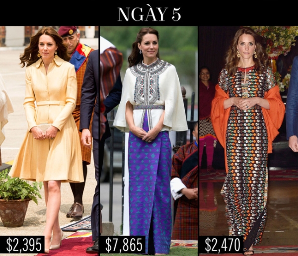 Trong 1 tuần thăm Ấn Độ và Bhutan, công nương Kate đã diện tổng cộng 17 bộ đồ với tần suất 2 - 3 bộ 1 ngày.