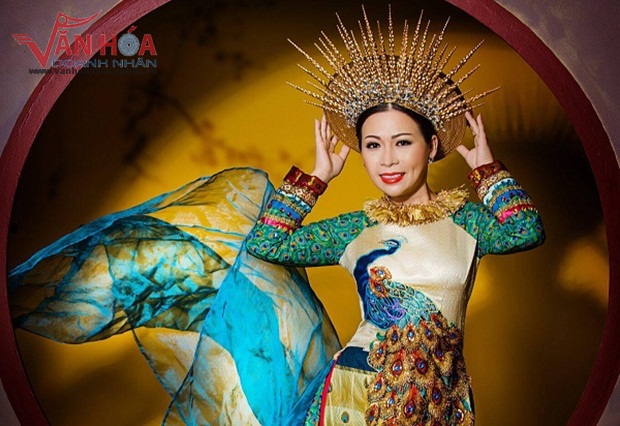 Nhà báo Minh Thúy (Tổng Giám đốc Trường Sơn Media) yêu kiều duyên dáng trong chiếc áo dài được thiết kế bởi NTK Tuấn Hải.