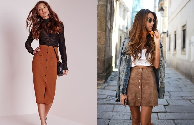 Button down skirt (chân váy cài cúc lưng cao) mang vẻ đẹp cổ điển của thập niên 70, pha chút ngẫu hững và phá cách từ phong cách boho nhưng vẫn rất trẻ trung và năng động.