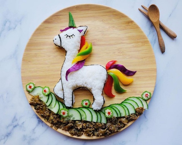 Những "bức tranh" trang trí bằng nguyên liệu các món ăn được chị Quế Phương kỳ công thực hiện để "dụ" con ăn ngon.