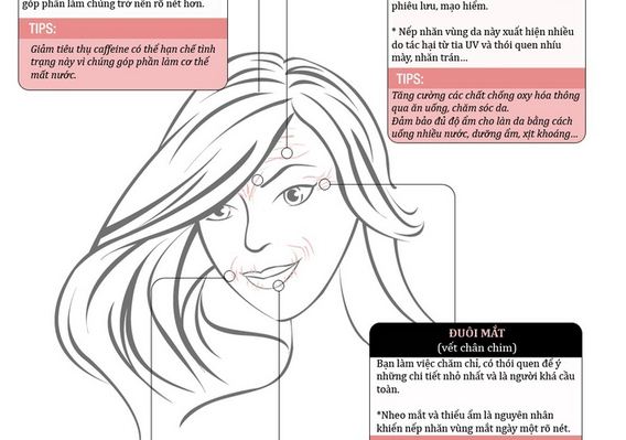 'Bắt bệnh' từng vị trí nếp nhăn trên gương mặt