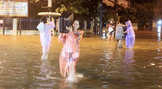 Đêm 15.12, nước lũ từ các hồ chứa thủy điện ở thượng nguồn hệ thống sông Vu Gia-Thu Bồn ào ạt đổ xuống hạ du. Nước lũ lên rất nhanh tràn vào nhà khiến người dân TP.Hội An, Quảng Nam phải thức trắng đêm dọn đồ chạy lũ.