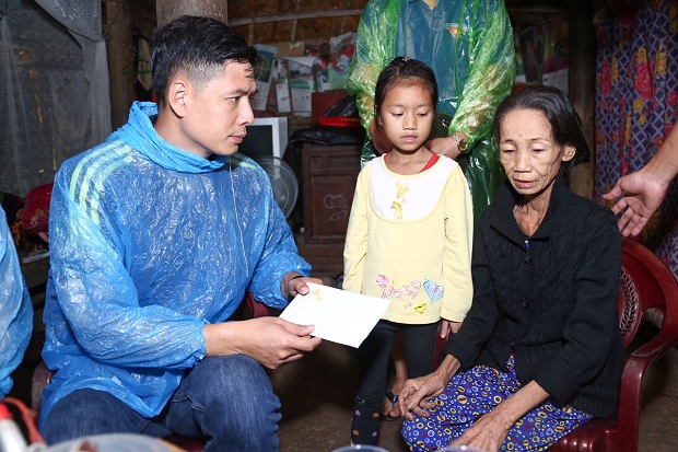 Diễn viên Bình Minh, nhạc sĩ Nguyễn Hồng Thuận, đại diện hệ thống Kingdom cùng nhiều mạnh thường quân khác đã có mặt tại hai huyện Vũ Quang và Hương Khê của tỉnh Hà Tĩnh để giúp đỡ người dân nơi đây.