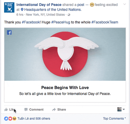 Facebook vừa thêm hiệu ứng thả tim dành cho Ngày hòa bình thế giới
