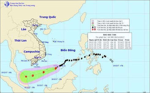 Theo Trung tâm Dự báo Khí tượng Thủy văn Trung ương, hồi 13h ngày 20/12, vị trí tâm bão cách đảo Trường Sa Lớn (thuộc...
