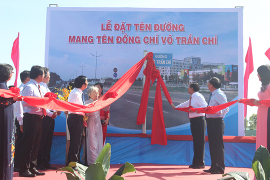 Lãnh đạo và nguyên lãnh đạo TP HCM cùng đại diện các sở, ngành thực hiện nghi lễ đặt tên đường Võ Trần Chí vào sáng 22-5