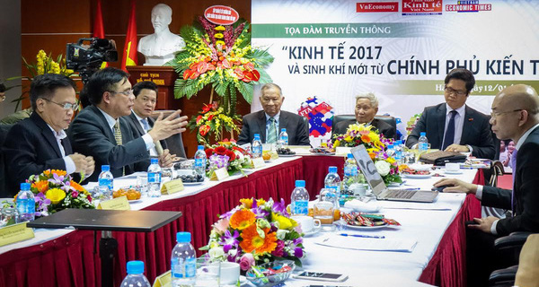 Không khí tại buổi toạ đàm “Kinh tế 2017 và sinh khí mới từ Chính phủ kiến tạo”, diễn ra tại Thời báo Kinh tế Việt Nam chiều 12/1...