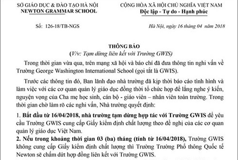 Bộ GD-ĐT vừa ra văn bản yêu cầu Sở GD-ĐT Hà Nội chỉ đạo trường Tiểu học - THCS - THPT Newton dừng...