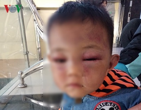 Bé trai 2 tuổi nhập viện trong tình trạng, mặt mày sưng phù, không thể ăn được. Người thân cho biết nguyên nhân là do bé bị cha dượng đánh đập.