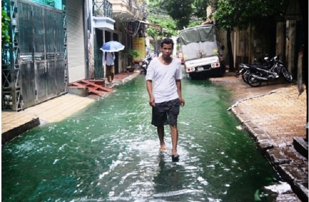 Phòng Cảnh sát Phòng chống Tội phạm về Môi trường Hà Nội cho biết đã tìm được nguyên nhân được nước màu xanh bất thường sau trận mưa kéo dài tại ngõ 87 phố Tam Trinh.