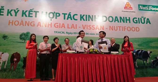 Hôm qua, CTCP Hoàng Anh Gia Lai đã ký hai hợp đồng hợp tác kinh doanh, một với Công ty TNHH MTV Việt Nam kỹ nghệ súc sản (VISSAN) để sản xuất thịt bò và hợp đồng còn lại với CTCP Thực phẩm dinh dưỡng Nutifood (Nutifood) để sản xuất sữa tươi.