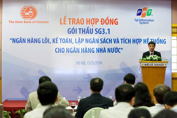 Tuần qua, tại Hà Nội đã diễn ra lễ trao hợp đồng gói thầu SG 3.1 “Ngân hàng lõi, các ứng dụng kế toán, ngân sách và tích hợp hệ thống cho Ngân hàng Nhà nước Việt Nam” giữa Ngân hàng Nhà nước và Công ty Hệ thống Thông tin FPT (FPT IS).